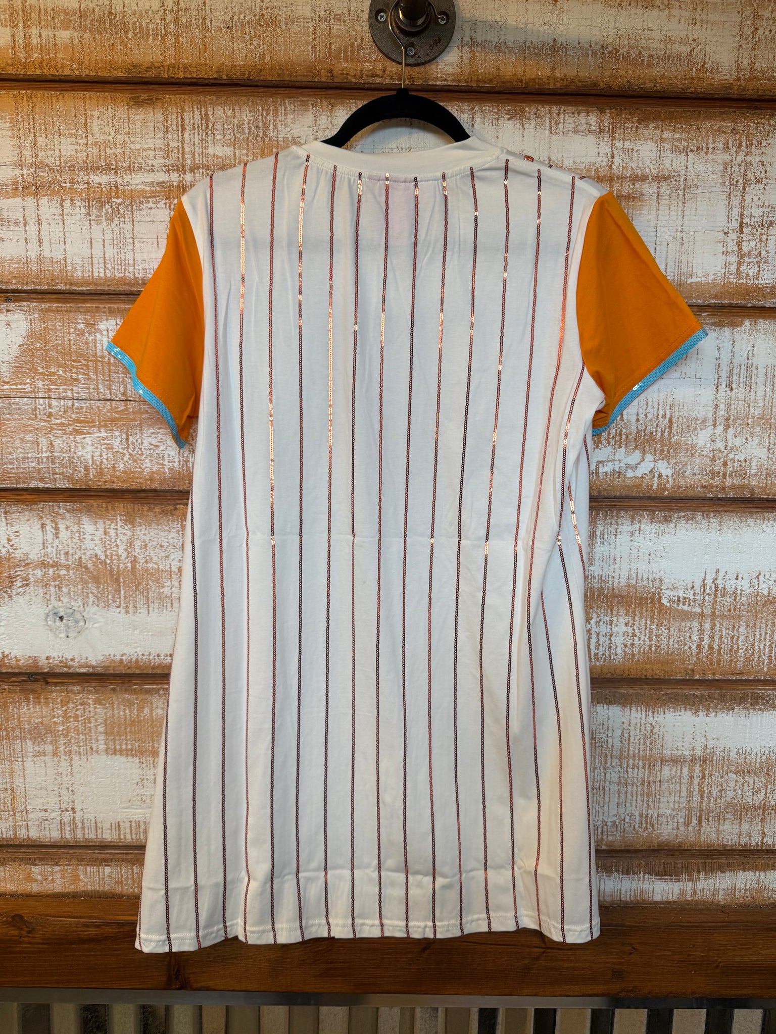 Oh so cute for any VOLS fan!! Long tee style dress/tunic pattern in sequins and stones. A must have for the ballpark!